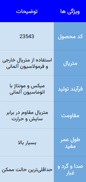 - استفاده از متریال خارجی با فرمولاسیون آلمانی